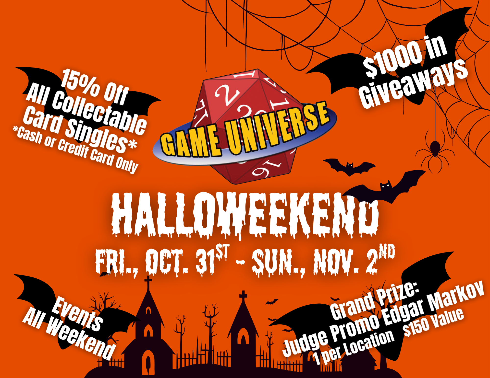 Get 15% off Collectable Card Singles all weekend!* Plus enter for your chance to win $1000 in Giveaways and join in our spooky special Halloweekend events!