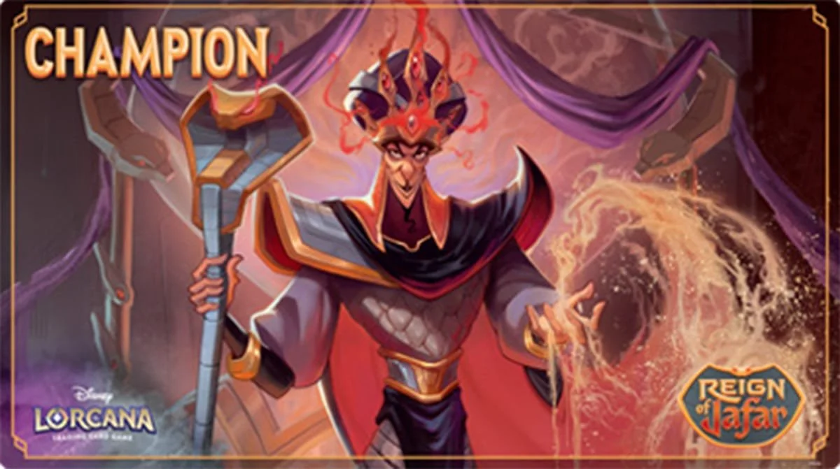 The Champion will receive a “Jafar - High Sultan of Lorcana” Champion Playmat and “Jafar - High Sultan of Lorcana” Top 8 promo card and “Jafar - High Sultan of Lorcana” participation promo.